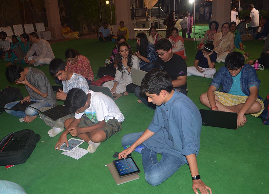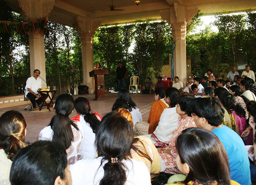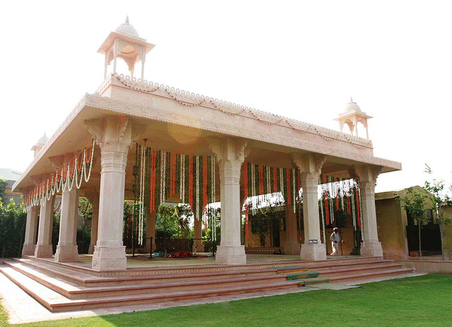 The Sai Ka Aangan temple compound has outdoor assembly hall ‘the Sabha Mandap’ for general temple gatherings. Devotees/visitors to the temple often gather here for Sai Satcharitra Group reading. Every month on Purnima (full moon day) Shri Sai Satya Narayan Puja is conducted at the Sabha Mandap.